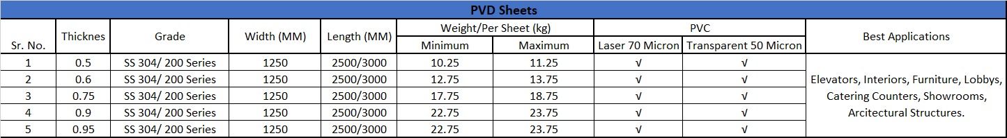 Mirror-coloured PVD stainless steel sheets are a popular choice in modern architecture and design due to their aesthetic appeal and durability. This specialized stainless steel undergoes a unique coating process that results in a reflective surface with a variety of vibrant colours, making it suitable for a wide range of applications.